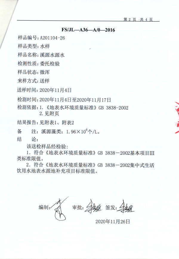 源水(shuǐ)11月檢測報告(送檢):